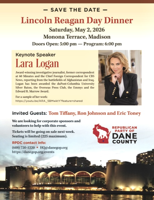 Welcome to the Republican Party of Dane County We need your help to elect local, state, and federal candidates. Join our team today. VOLUNTEER MEMBERSHIP Events Latest News & Blog Why Dane County? Purchase Tickets Meet Byron News & Events News & Events Why Dane County? Lincoln Reagan Day Dinner (LRDD) September 21, 2024 6pm Cocktails 7pm Dinner. News & Events Why Dane County? DONATE REGISTER TO VOTE. Learn More Run for Office Sign Up Upcoming Events February 1, 2026 Secretary – SAVE THE DATE – Lincoln Reagan Day Dinner Saturday, May 2, 2026 Monona Terrace, Madison Read more Sign Up For Newsletter Please enable JavaScript in your browser to complete this form.Name *FirstLastEmail *EmailSign Up To Receive Republican Party of Dane County Email Newsletter. Sign Up For Newsletter Please enable JavaScript in your browser to complete this form.Name *FirstLastEmail *MessageSign Up